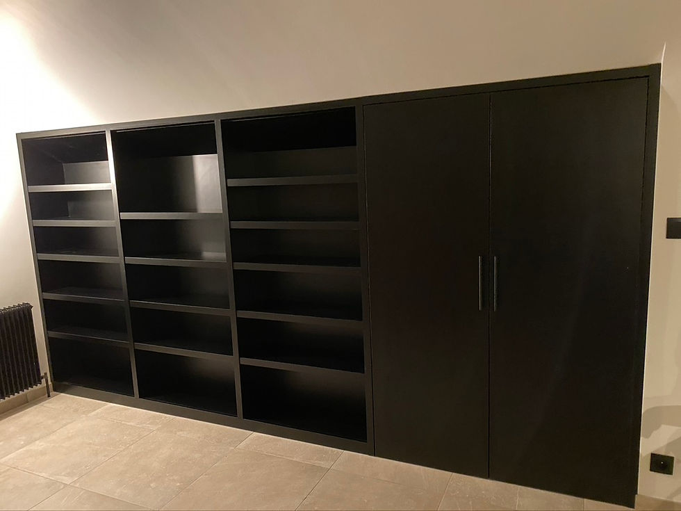 Conception et réalisation d'une bibliothèque en stratifié sous rampant de toiture